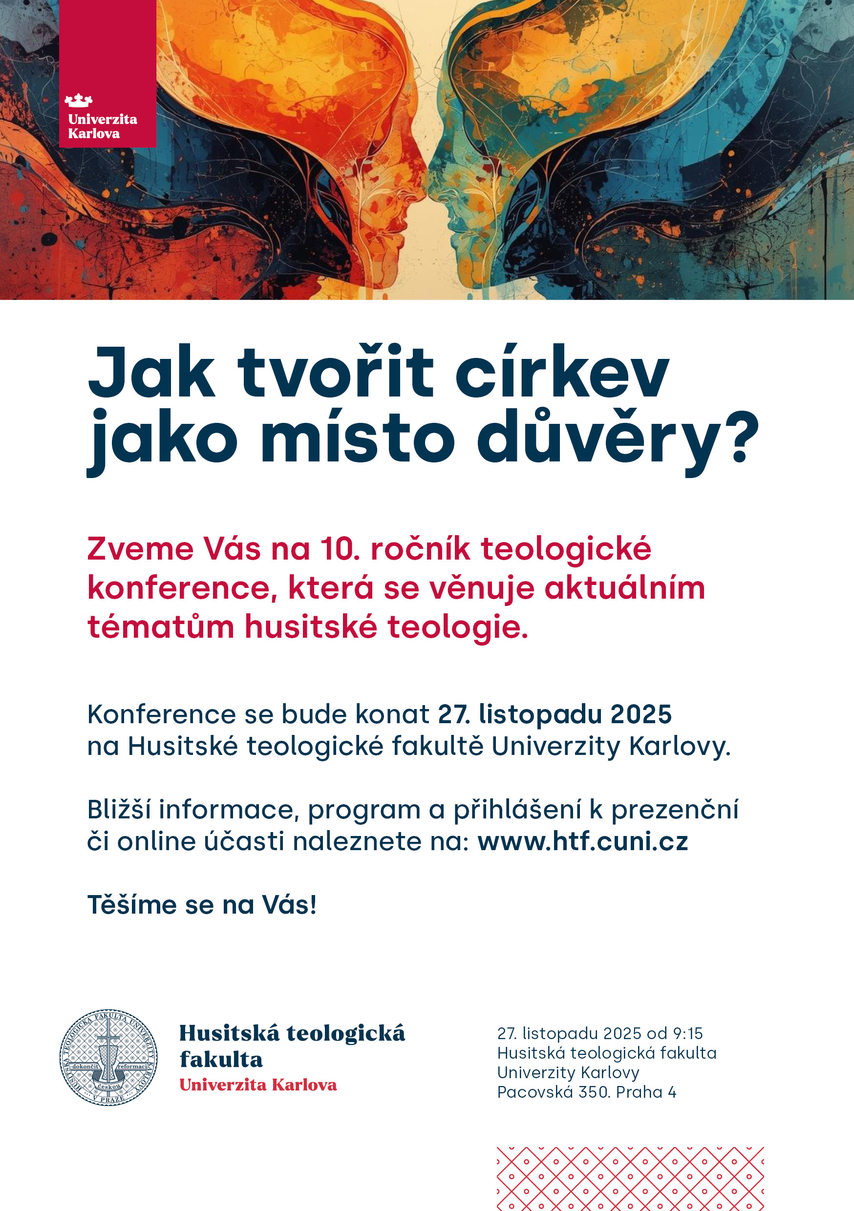 Více informací, program se zajímavými hosty a přihlašovací formulář (k prezenční i online formě) je otevřený do 24.11.2025 na Teologická konference „Jak tvořit církev jako místo důvěry?“ - Husitská teologická fakulta.