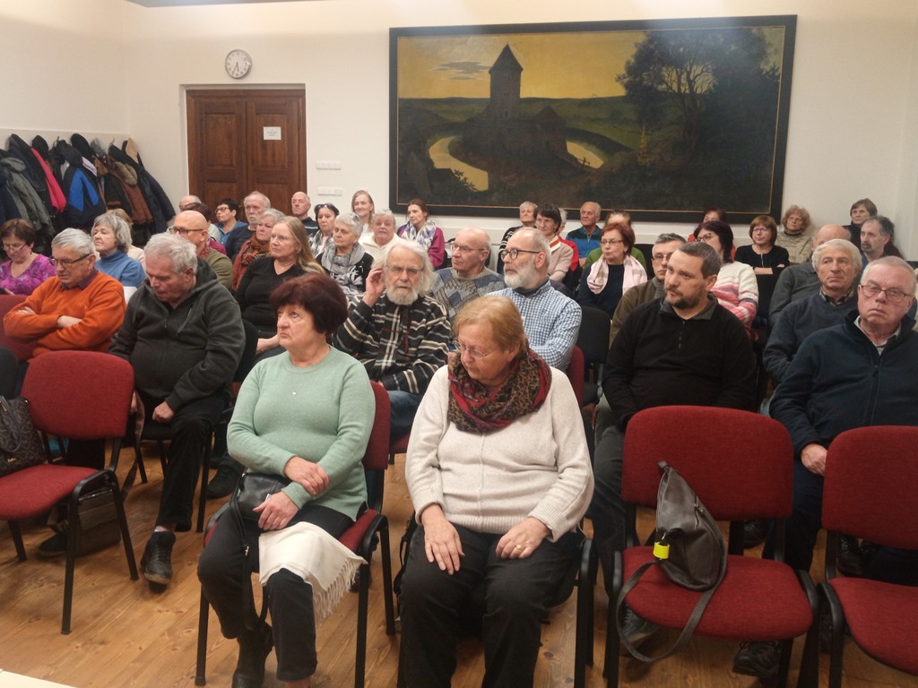 Zaplněný sál si v doprovodné obrazové prezentaci mimo jiné připomněl i umělecké a historické vazby chýnovského sochaře na Táborsko.