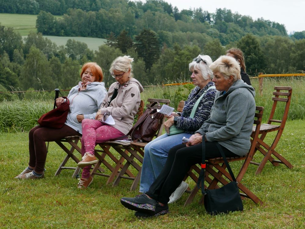 Tato a další slova, písně a modlitby, pak zazněla kromě nedávno postavené moderní kaple s motivem kříže také na místě Farského rodné chalupy a u sloupu s reliéfem patriarchy, které jsou součástí přírodního areálu.