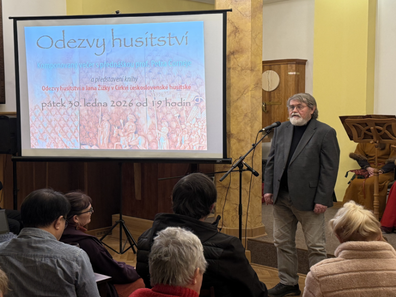 Zvláštností tohoto večera bylo, že se na jeho programu podíleli pracovníci ústředí naší církve v souvislosti s představením publikace „Odezvy husitství a Jana Žižky v Církvi československé husitské“. Tuto publikaci vydala v roce 2025 naše církev v edici Blahoslav ve spolupráci a za podpory Husitského muzea v Táboře na základě podepsaného memoranda ze dne 12. února 2024. Podílel se na ní tým autorů a spolupracovníků.