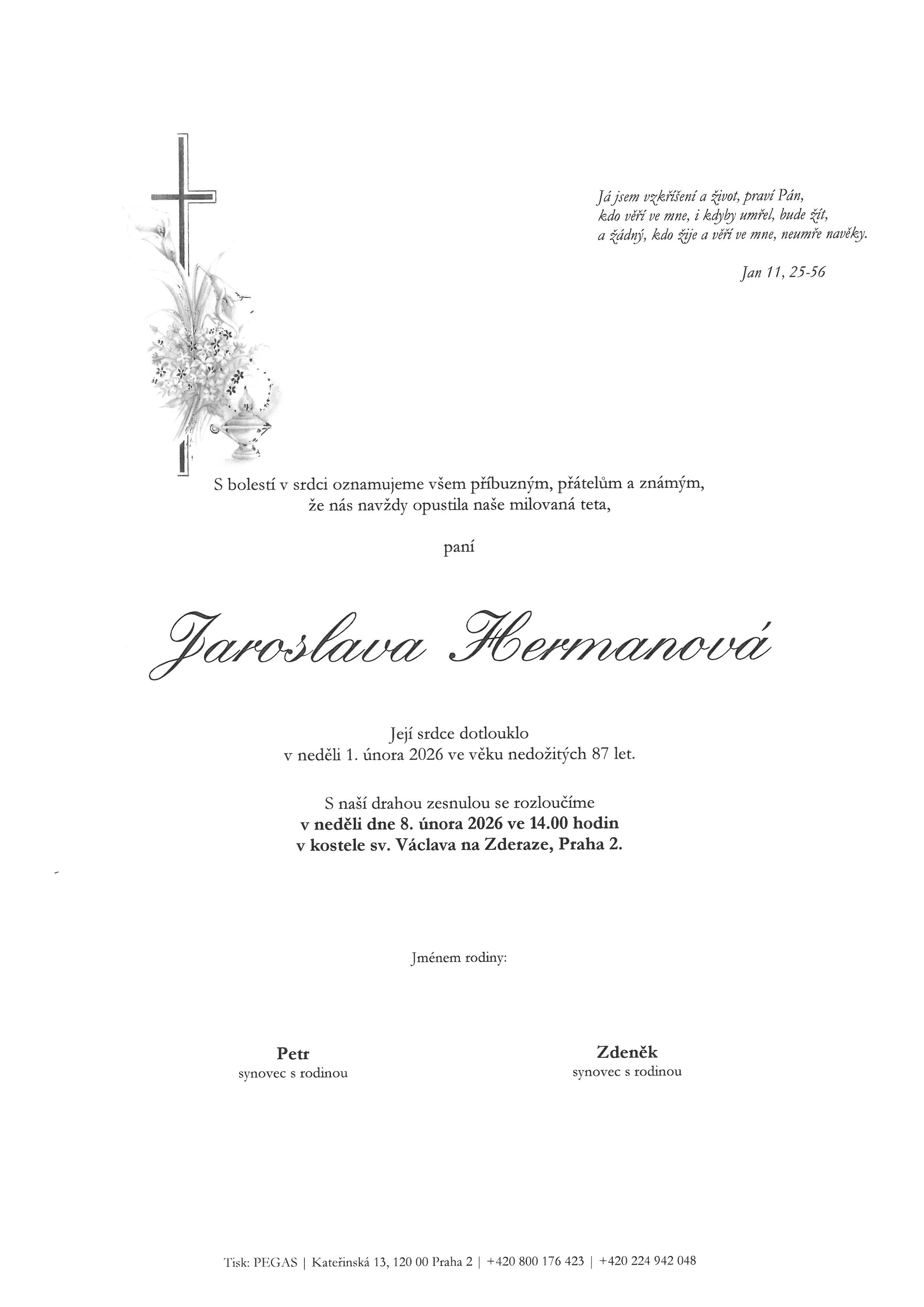 Zemřela sestra Jaroslava Hermanová Zamrazilová, operní pěvkyně a dlouholetá členka NO Praha – Nové Město, skvělá umělkyně a lidská bytost.