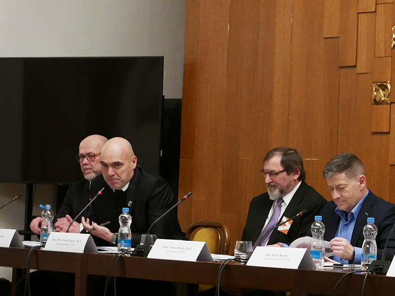 Za Církev československou husitskou ve své řeči poděkoval politikům ze Sněmovny svým způsobem biskup David Tonzar: „Ať Sněmovnu řídil jeden nebo druhý, ať byl zde jakýkoli místopředseda z té či oné strany, tak je úžasné, že vždy řekli naší církvi - můžete. Ať tu byl kdokoli, vždy jsme tady byli!“ Biskup podtrhl skutečnost, že Masaryk by nesouhlasil jen s pouhým setkáním k výročí, ale především by požadoval, aby se o jeho myšlenkách diskutovalo a přemýšlelo. Proto podtrhl jednu z hlavních Masarykových myšlenek, když navázal na sv. Augustina: „V nezbytném je jednota, v nerozhodnutém je svoboda, chcete-li volnost, ale ve všem láska.“ Biskup Tonzar dodal: „Láska je něco napříč politickým spektrem.“