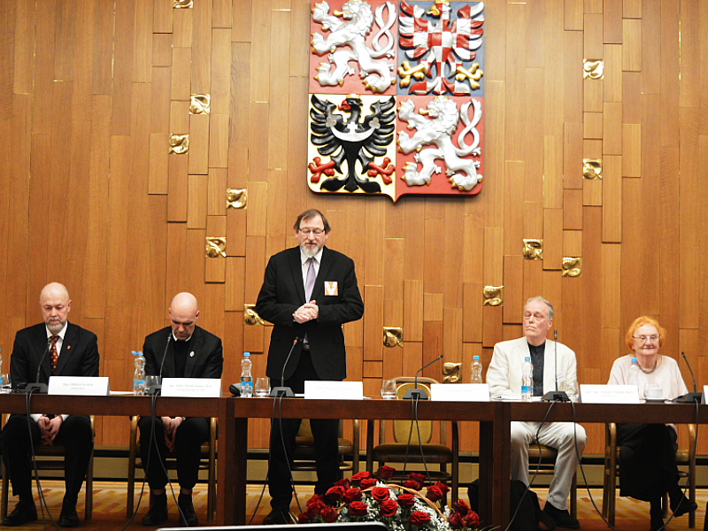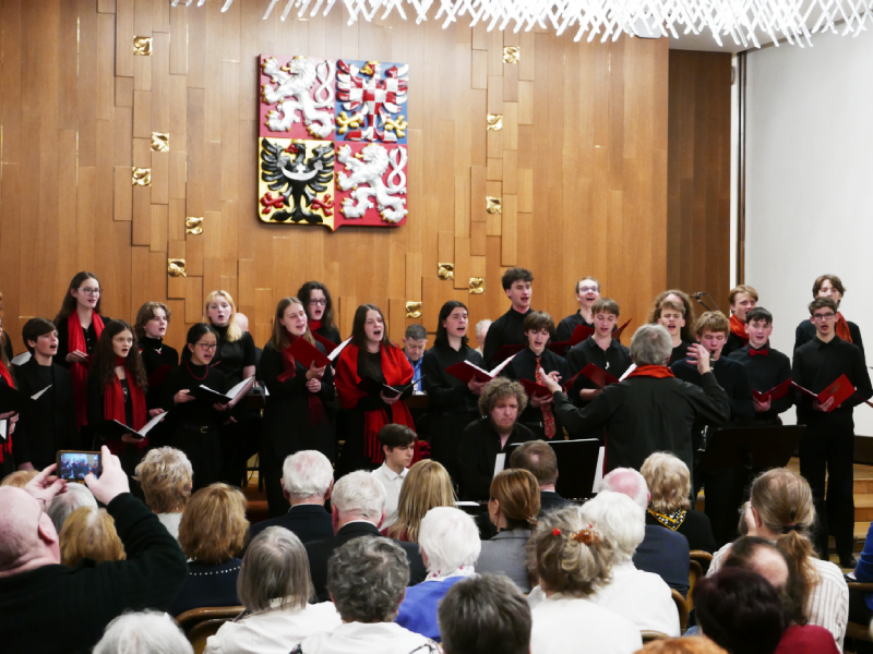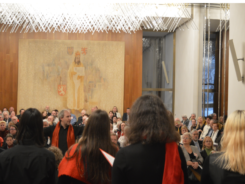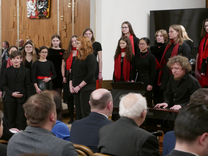 Stejně jako při minulých vzpomínkových setkáních, tak i tentokrát přednášky a řečnická vystoupení tradičně kolorovalo hudební vystoupení studentů Gymnázia Jana Keplera v Praze pod vedením sbormistra Romana Michálka.