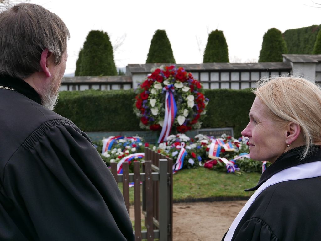 Za Církev československou husitskou památku uctili patriarcha Tomáš Butta spolu s farářkou Janou Šmardovou Koulovou. Pietní setkání bylo zakončeno Večerkou (Il silenzio) a státní hymnou.
