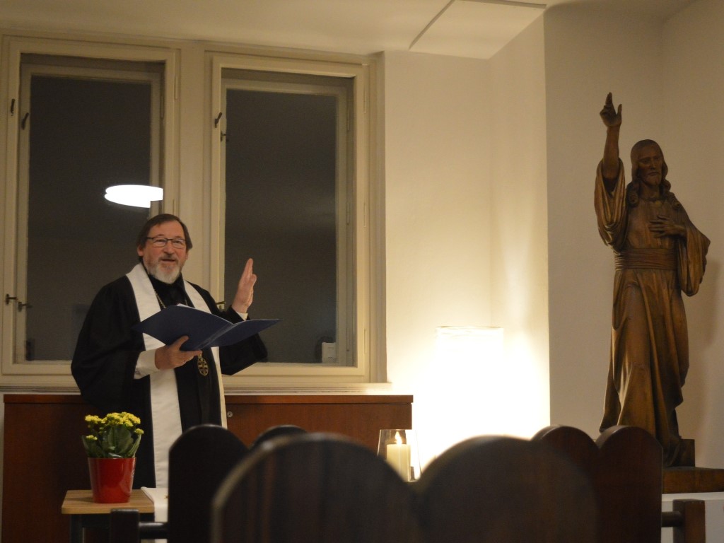 Znovuotevření kolejní kaple je pro nás slavnostní příležitostí a událostí. Chceme především poděkovat Bohu, jehož požehnání je předpokladem zdaru každého našeho lidského díla. Současně chceme poděkovat lidem, bez jejichž práce a nasazení by toto dílo nemělo svoji viditelnou a materiální podobu. Chtěl bych poděkovat spolupracovníkům bratru Alešovi z úřadu ústřední rady a bratru Petrovi z Institutu evangelizace a pastorace, firmě pana Weidenthalera, panu Miloši Karlovi, panu Václavu Bendovi a dalším. Společným úsilím a prací zde vzniklo přívětivé prostředí a útulné zázemí pro studentky a studenty.